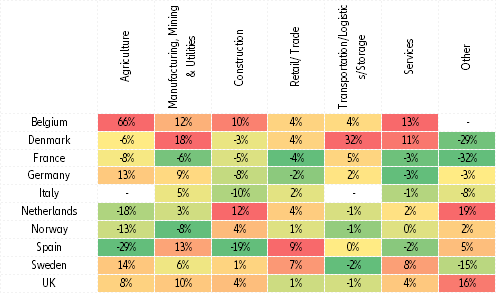 Indeed, 2019 has been marked by at least two key factors which contributed to this outcome: first the softer macroeconomic tempo; secondly the higher level of uncertainties due to both political issues and trade disputes. All in all, corporates not only faced weaker global demand, but also weaker global trade, notably in goods and in value terms, which led to weaker global manufacturing and increased price competition, on top of inventory issues due to preventive stockpiling (for example, the Brexit case) or oversupply (i.e. in the automotive sector). The implementation of new types of insolvency procedures and the cleaning of business registers through the official insolvency procedures in a few countries also explains the overall increase in insolvency figures.