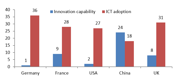 - The subdued outlook for the German economy provides a glimpse of a “stranded” future. Europe’s economic powerhouse is struggling to keep up with structural change, putting it at risk of becoming a “stranded economy” with its long-standing competitive advantage in industry and in particular the car sector becoming obsolete. While the German economy remains highly innovative, it is increasingly struggling to leverage its potential, given the lack of even a basic digital infrastructure, a growing digital skills gap and inadequate start-up funding.