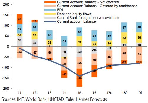 Back in 2015, Africa experienced a common financial stress, as a result of a commodity price slump and falling exports. It triggered a USD -141 billion (bn) current account deficit, with the -86bn not covered by workers remittances financed mainly through debt (bilateral and IMF loans).