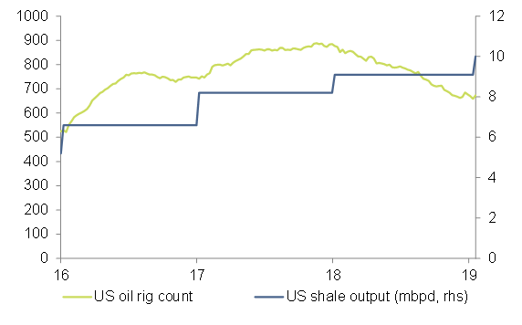 Tight finances and weak growth. The U.S. energy sector, particularly shale oil, is highly leveraged, with an averge gearing close to 200% and net debt to Ebitda ratio of 2.8x for our independent/shale basket of quoted companies. That, however, masks ratios at the high end reaching 8x net debt/Ebitda and also the fact that most of these companies have gone through recent fundraisings. We gauge that the smaller and privately held end of the sector presents yet weaker financials. The majority of independent energy companies in the U.S. are cash-burning and thus require incremental fundraising. However, declining investor appetite and patience, as well as a less bullish oil price backdrop, have dried up available liquidity for the sector. Lack of funding deprives companies of growth from new wells, but not only that: Little upside from oil prices means no growth from existing assets and erosion of liquidity. Completing the vicious circle, this not a pattern prone to attracting fresh funds.