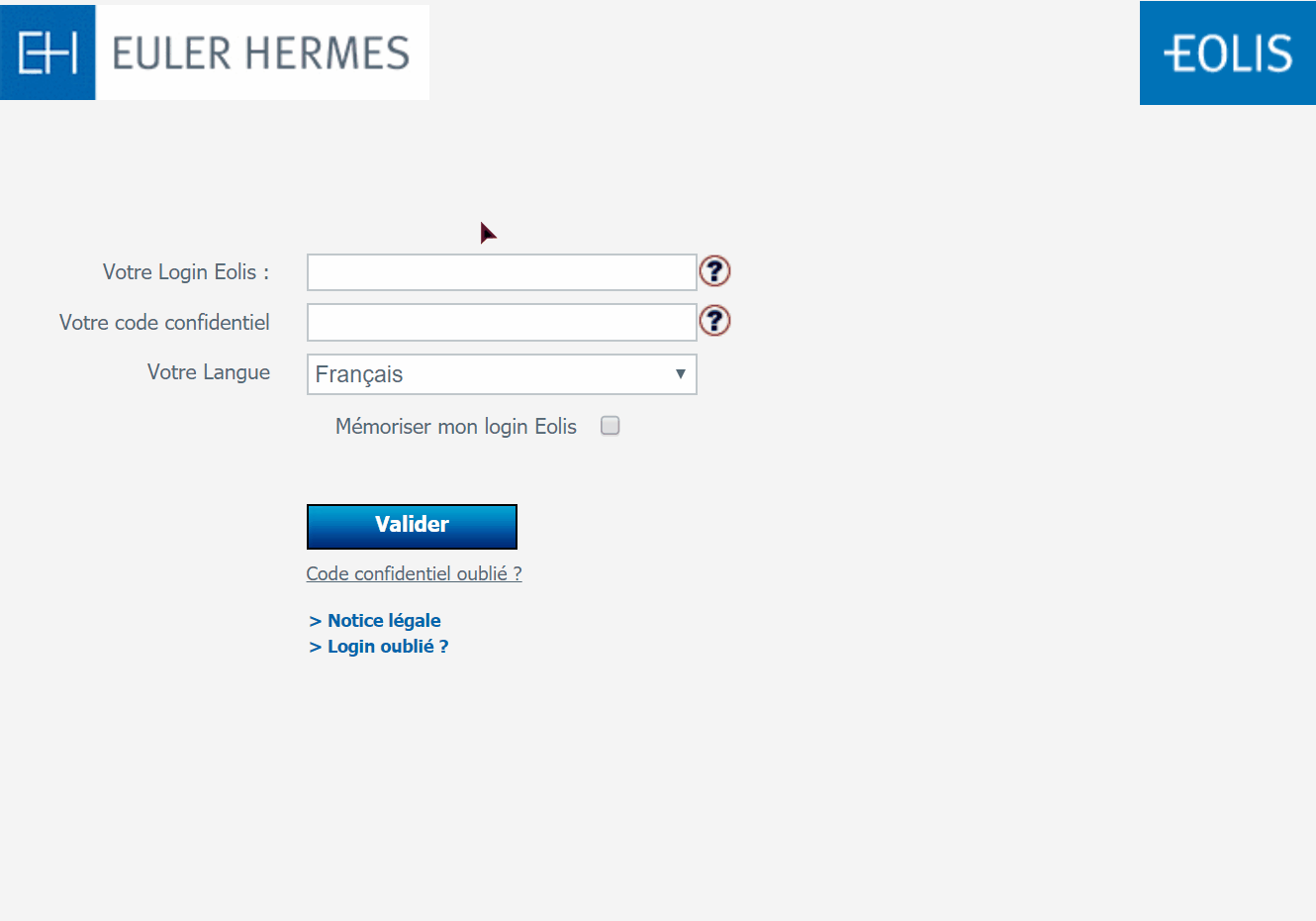 Lors de votre première connexion à EOLIS, indiquez le nom d’utilisateur et le mot de passe à huit chiffres qui vous ont été transmis par Allianz Trade.