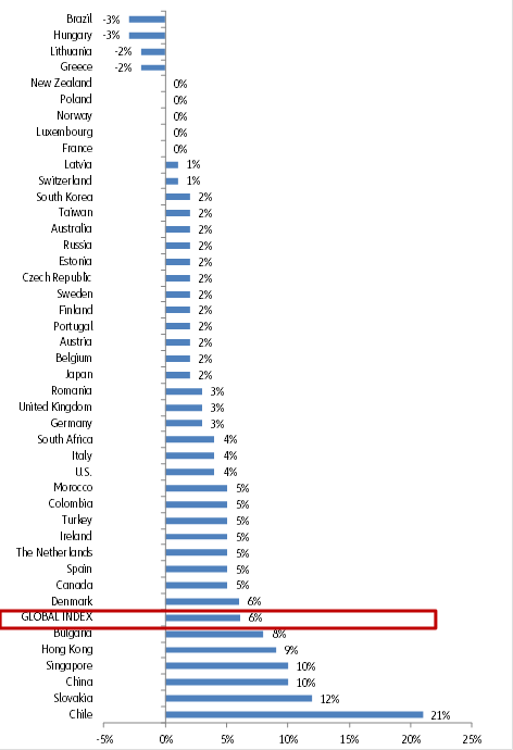In 2019, global insolvencies rose for the third consecutive year. Indeed, our Global Insolvency Index, which covers 44 countries that account for 87% of global GDP, is expected to record a +9% y/y increase for 2019. This outcome reflects a prolonged surge in China (+20%) and, to a lesser extent, a trend reversal in Western Europe (+2%) and North America (+3%); it also reflects a slightly worse than expected trend compared to our previous forecast released in September (+8%), due to a more elevated number of insolvencies in specific countries such as Chile, Colombia, India, Russia and Singapore.